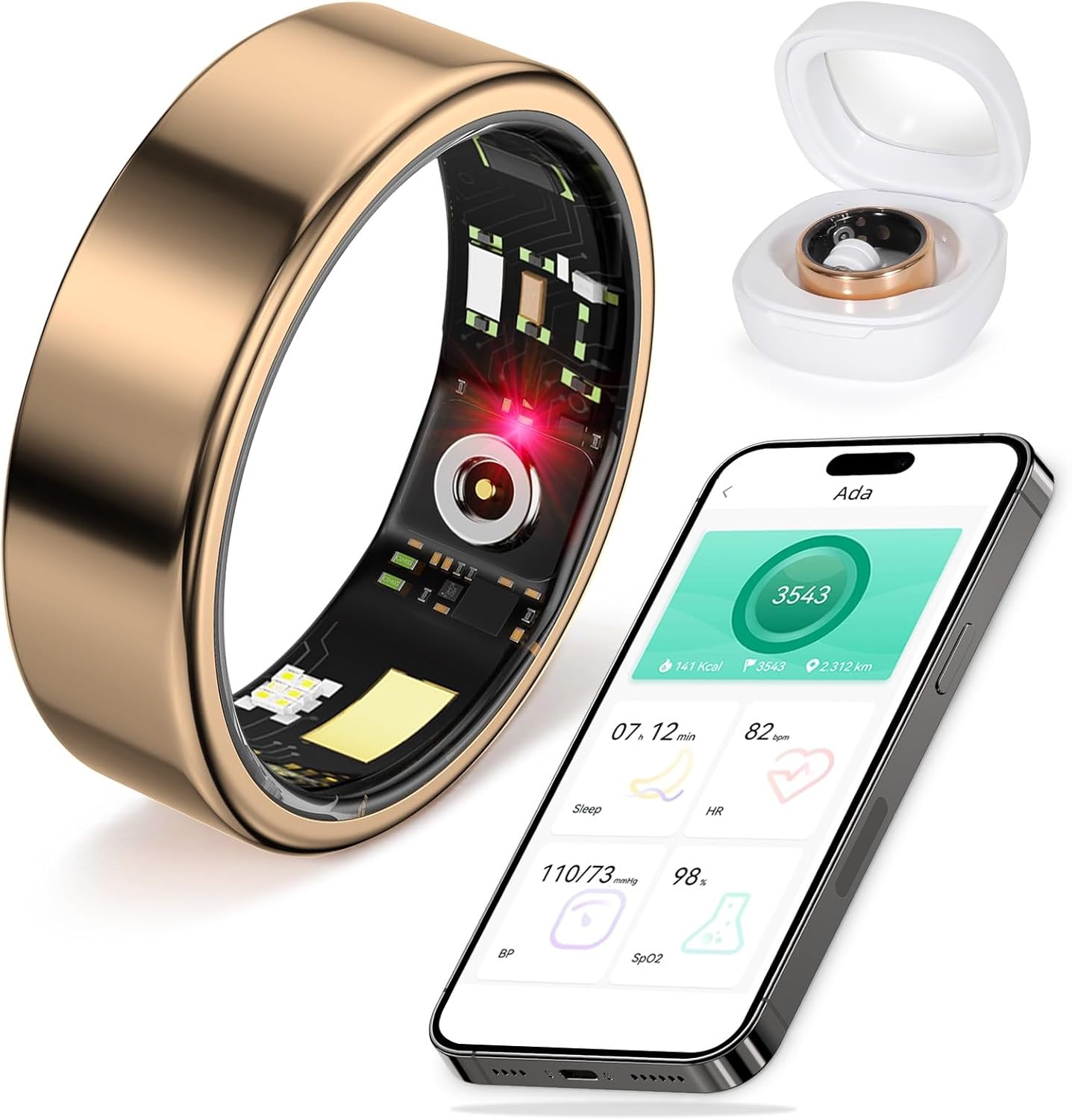 Smart Ring Fitness Tracker Ring for Men Women – Health Sleep Heart Rate Step Blood Oxygen Blood Pressure Tracker, IP68, No App Fee, Remote Photography, Utra Battery Life, Family Care(9# 18.95mm)